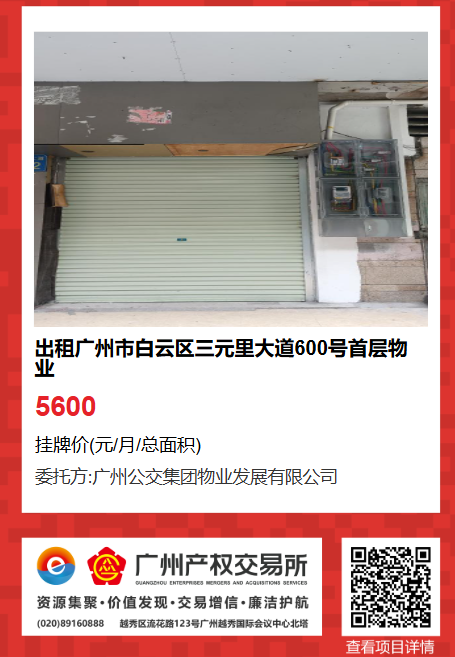 現(xiàn)有廣州市白云區(qū)三元里大道600號(hào)首層物業(yè)出租項(xiàng)目,該項(xiàng)目在廣州公有物業(yè)出租平臺(tái)網(wǎng)站自?huà)炫乒_(kāi)招租,歡迎有意向的企業(yè)法人或自然人(含個(gè)體工商戶(hù))參加應(yīng)租?,F(xiàn)將有關(guān)事項(xiàng)說(shuō)明如下: