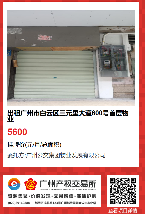 現(xiàn)有廣州市白云區(qū)三元里大道600號(hào)首層物業(yè)出租項(xiàng)目,該項(xiàng)目在廣州公有物業(yè)出租平臺(tái)網(wǎng)站自掛牌公開招租,歡迎有意向的企業(yè)法人或自然人(含個(gè)體工商戶)參加應(yīng)租?,F(xiàn)將有關(guān)事項(xiàng)說明如下: