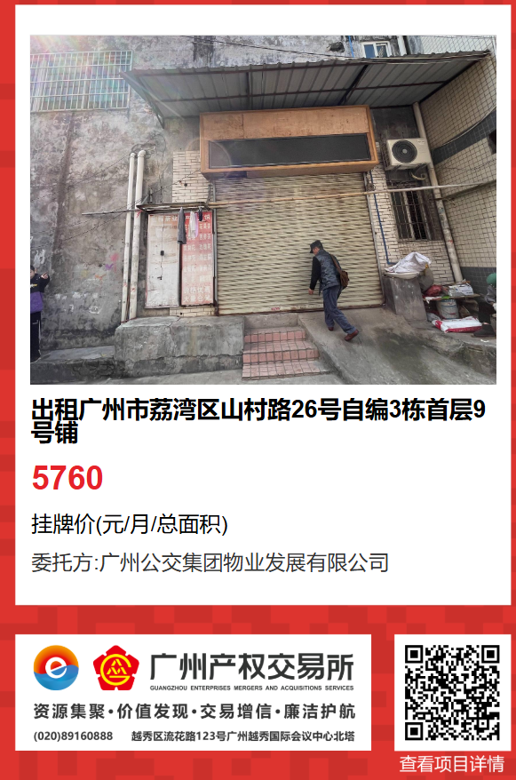 (一)項(xiàng)目名稱:出租廣州市荔灣區(qū)山村路26號自編3棟首層9號鋪物業(yè)。